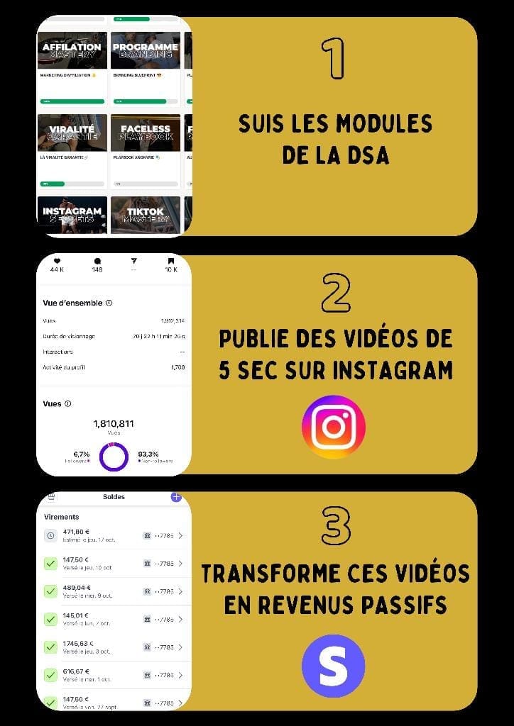 J'ai longtemps cherché un moyen de gagner ma vie depuis chez moi, sans délaisser ma famille. La DSA m'a donnée les clés pour me lancer : créer un produit digital, vendre en ligne, et surtout garder 100% des bénéfices en la revendant.